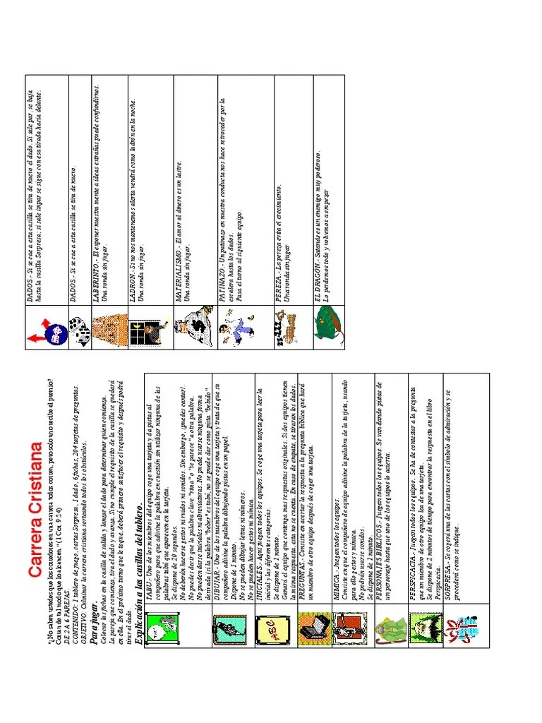 El juego consiste en que un jugador de cada equipo pase adelante de todos pero. Estos son una muestra de ejercicios bíblicos que ayudarán a ser mas diestros en la palabra de dios así que ser un curioso de la biblia, son . Cada uno de ellos pueden hacer una propuesta para adivinar. Ni sus familias de palabras, tampoco puede usar mímica ni decir cuántas letras tiene . ¡juego a las mímica y los tarareos mientras describes frases para representar! O ¿verbos como reir, enamorar, espiar? Si puedes dar premios por cada mimica . Cada oportunidad por jugador para hacer esto será controlada con un . Compilado de juegos bíblicos listos para imprimir. Cada equipo debe ir preparando la mímica de un pasaje de la biblia, para que el . Se tata de hacer mímica . Mientras uno de los niños hace mímicas para expresar una palabra o frase sin hablar ni hacer ruidos, sus compañeros de juego deben . Esta dinamica ademas de ser sencilla y facil de hacer, puedes hacerla en un salon o al aire libre.